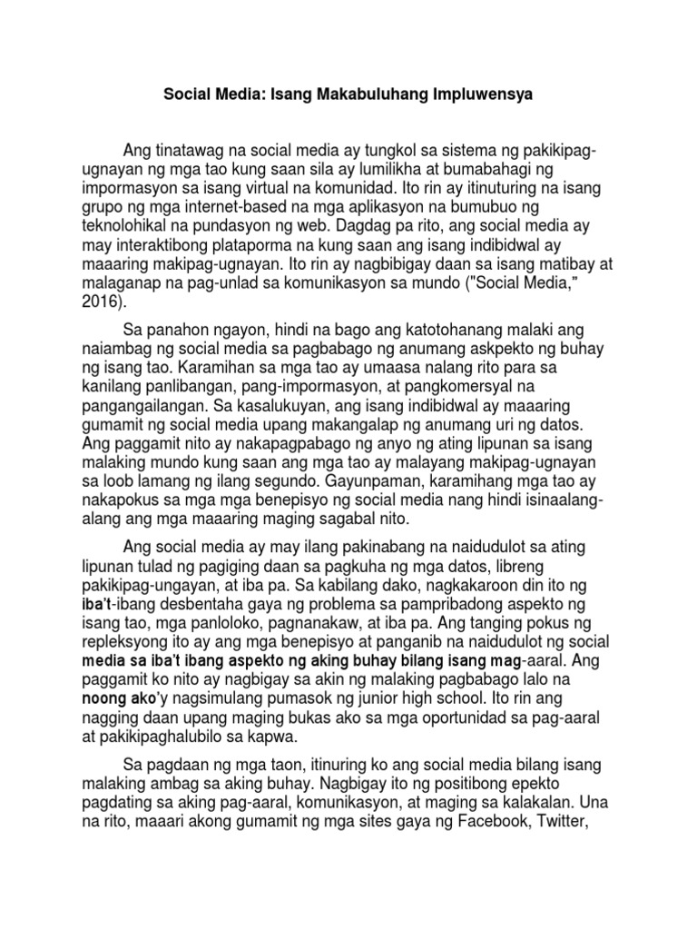 Naniniwala ako na ang komunikasyon ay. Personal Notes on States of Matter. Dito sa social media sites halos nakalagay ang mga balitang o isyung panlipunan na ating mga nababasa tayo ay nagkakaroon ng malawak na pang-unawa dahil namumulat tayo sa ibat-ibang perspektibo o pananaw ng ibang tao.