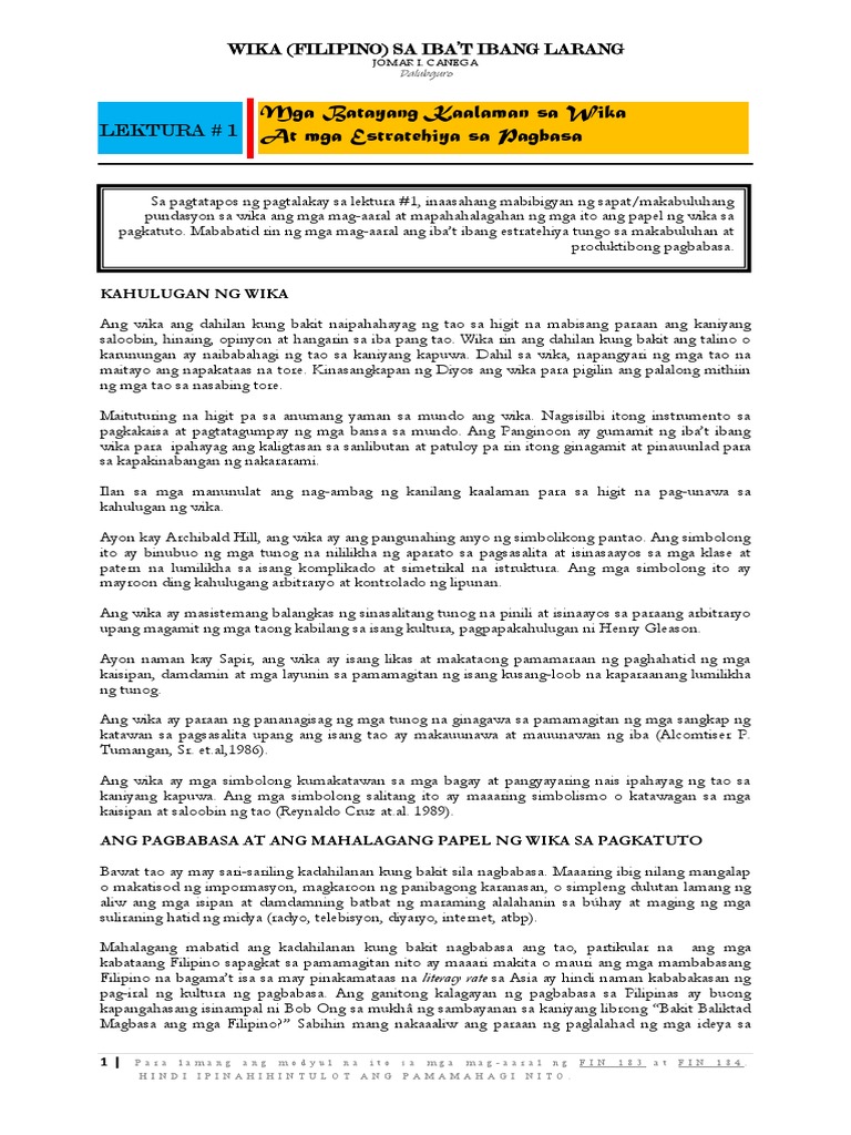 Modyul Wika Sa Iba T Ibang Larang Pdf