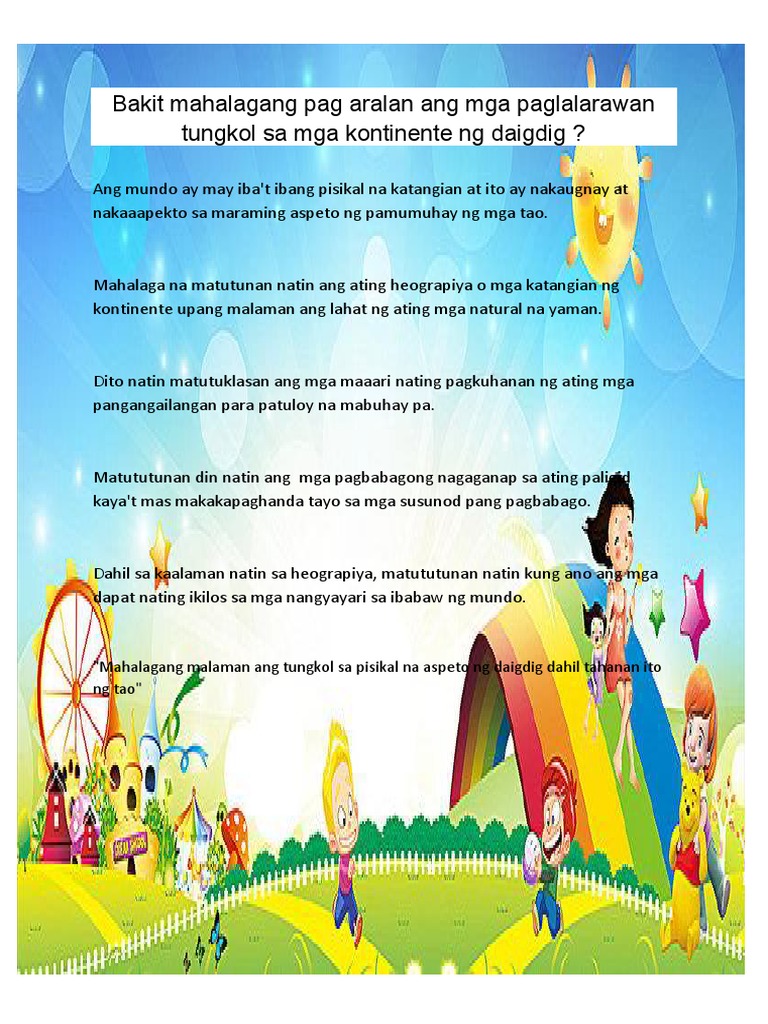 Bakit Mahalagang Pag Aralan Ang Mga Paglalarawan Tungkol Sa Mga Kontinente Ng Daigdig Pdf
